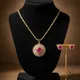 Zarya Jewel Ruby Red Halo Pendant Set with Stud Earrings | Gold Plated Diam...